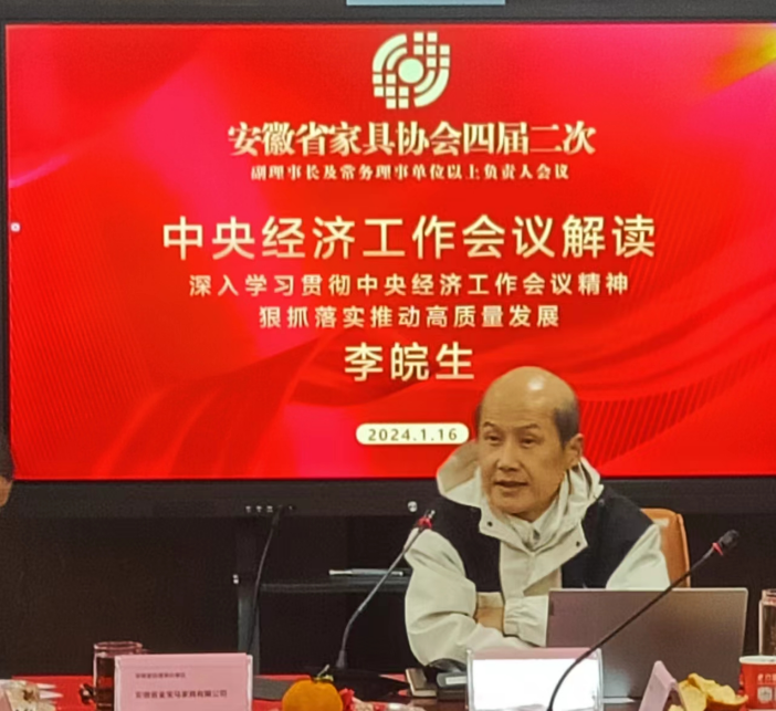會(hui) 議伊始,由中共安徽省社會(hui) 組織委員會(hui) 駐會(hui) 黨(dang) 建指導員李皖生做中央經濟工作會(hui) 議解讀報告,他從(cong) 全麵看待我國經濟社會(hui) 發展取得的進展成效、深化新時代做好經濟工作的規律性認識、把握2024年中國經濟發展的有利條件三個(ge) 方麵進行分析解讀。 其後對电子raybet各會(hui) 員單位提出了要深化了解新時代做好經濟工作規律性認識的建議,要認真把握2024年中國經濟發展的有利條件,進一步打開國內(nei) 宏觀政策的自主空間,家具行業(ye) 要繼續為(wei) 經濟發展蘊育新機遇。