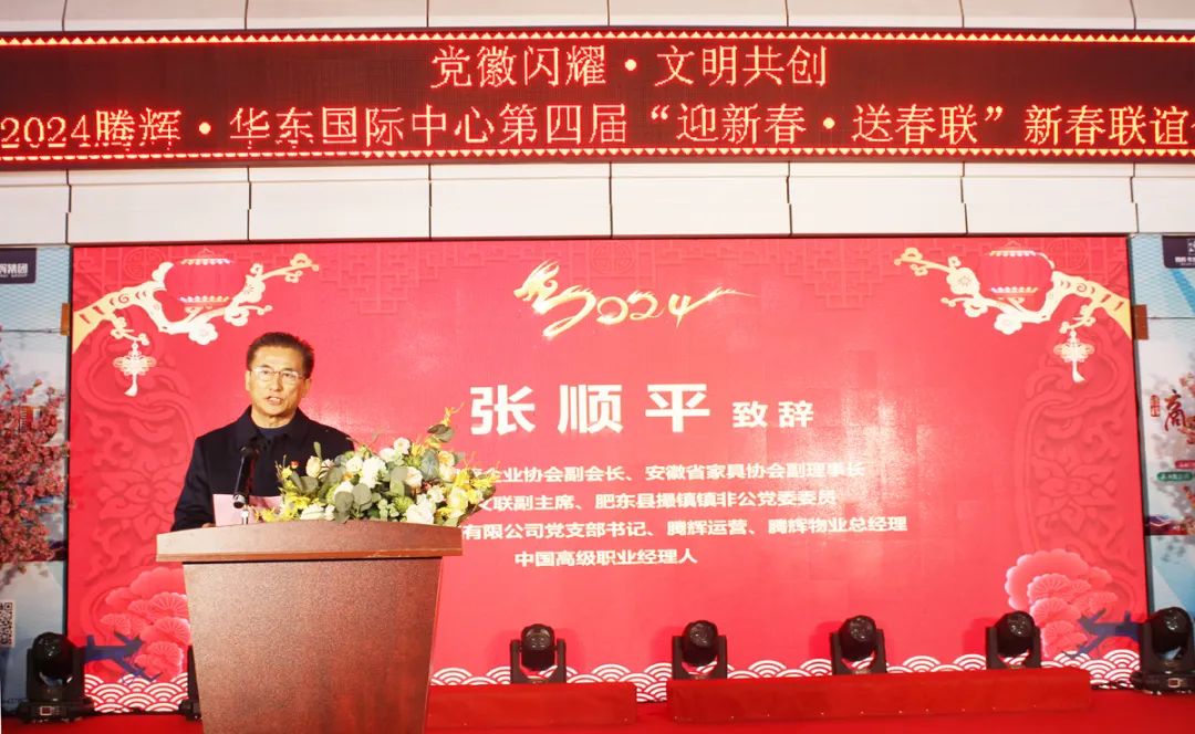 會(hui) 上,安徽省個(ge) 體(ti) 民營企業(ye) 協會(hui) 副會(hui) 長、电子raybet副理事長、肥東(dong) 縣職工文聯副主席、肥東(dong) 縣撮鎮鎮非公黨(dang) 委委員、騰輝商業(ye) 運營管理有限公司黨(dang) 支部書(shu) 記、 騰輝運營、騰輝物業(ye) 總經理 、中國高級職業(ye) 經理人張順平首先致辭,對騰輝·華東(dong) 建材中心十六年的成長與(yu) 發展,以及在各級政府領導下取得的成就做了簡單的介紹。2023年華東(dong) 建材中心被肥東(dong) 縣精神文明建設指導委員會(hui) 授予“肥東(dong) 縣文明單位”榮譽稱號,被安徽省個(ge) 體(ti) 民營企業(ye) 協會(hui) 評為(wei) “全省文明誠信民營企業(ye) ”,在第七屆中國民營企業(ye) 合作大會(hui) 上,獲得了中國個(ge) 體(ti) 勞動者協會(hui) 頒發的“最佳創意獎”,及安徽省個(ge) 體(ti) 民營企業(ye) 協會(hui) “第七屆中國民營企業(ye) 合作大會(hui) 組織工作突出貢獻單位”,也被肥東(dong) 縣組織部評定為(wei) “五星級黨(dang) 組織”,還獲得了肥東(dong) 縣勞動競賽委員會(hui) 、肥東(dong) 縣總工會(hui) 頒發的“五一勞動獎章”,同時也在市場各項服務中被廣大經營單位所肯定,全年共收到市場商戶贈送錦旗共68麵,創曆史新高。