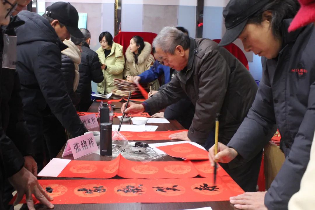 另外,還特別邀請了 中國美協會(hui) 員,安徽省美術家協會(hui) 理事,安徽省青年美協黨(dang) 支部書(shu) 記、秘書(shu) 長張緒祥,中國國畫院華東(dong) 分院副院長、高級書(shu) 畫師、安徽省詩書(shu) 畫研究會(hui) 理事、合肥市非物質文化遺產(chan) 傳(chuan) 人宗流柱,安徽省書(shu) 法家協會(hui) 誌願服務委員會(hui) 副秘書(shu) 長、省青年書(shu) 法家協會(hui) 副秘書(shu) 長、省直機關(guan) 書(shu) 畫家協會(hui) 副秘書(shu) 長孫啟彬,安徽國藝書(shu) 畫院特聘書(shu) 畫師、电子raybet副秘書(shu) 長劉家祚等幾位重量級的書(shu) 法藝術家,為(wei) 參會(hui) 人員“現場賜福”寫(xie) 春聯、送“福”字。