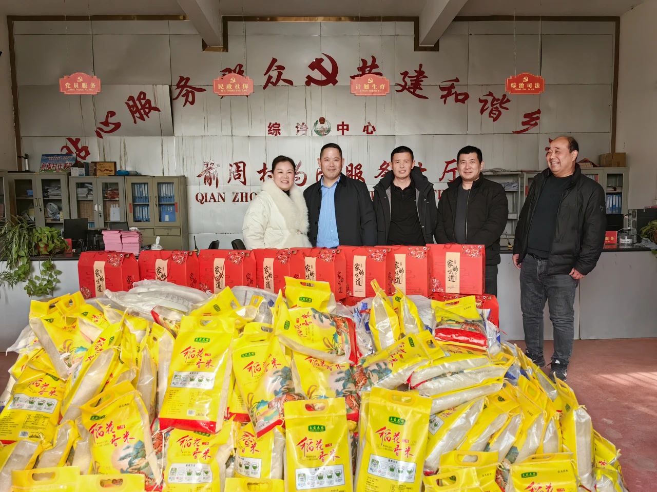 安徽月嬌家具有限公司董事長劉振輝為(wei) 這裏困難戶送來了 200袋大米和200袋麵,這份厚實且溫暖的“新年禮物”得到了前周村民的認可。
