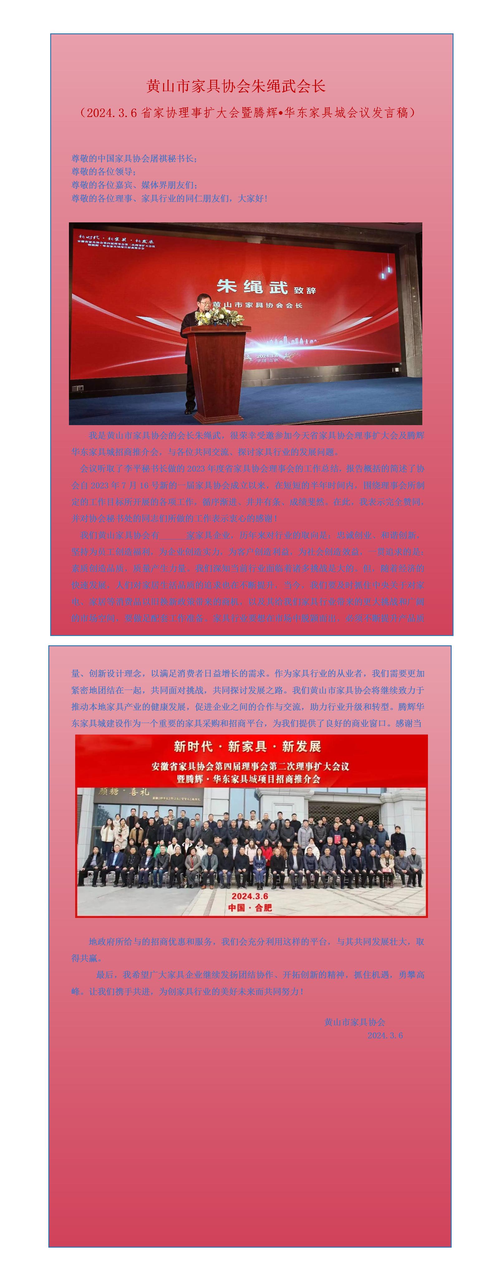 2024.3.6省家協副理事長、黃山市家具行業(ye) 協會(hui) 會(hui) 長朱繩武在四屆理事會(hui) 第二次理事擴大會(hui)