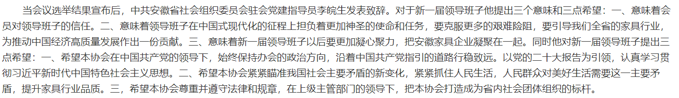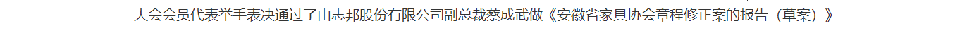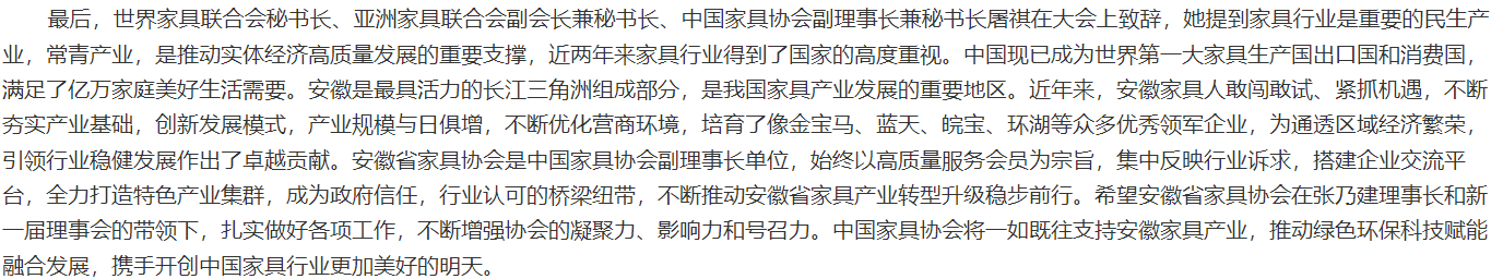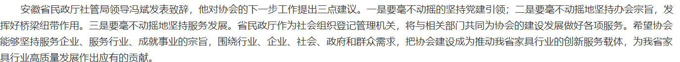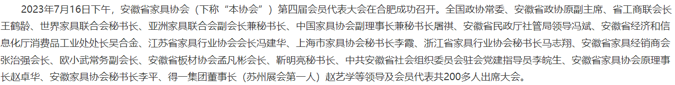 本協會(hui) 登記管理機關(guan) 是安徽省民政廳,接受業(ye) 務主管單位業(ye) 務指導和社團登記管理機關(guan) 的監督管理,本協會(hui) 承認中國家具協會(hui) 章程,接受中國家協的業(ye) 務指導,並真誠地與(yu) 全國各省市家具界同仁攜手,共創美好明天。