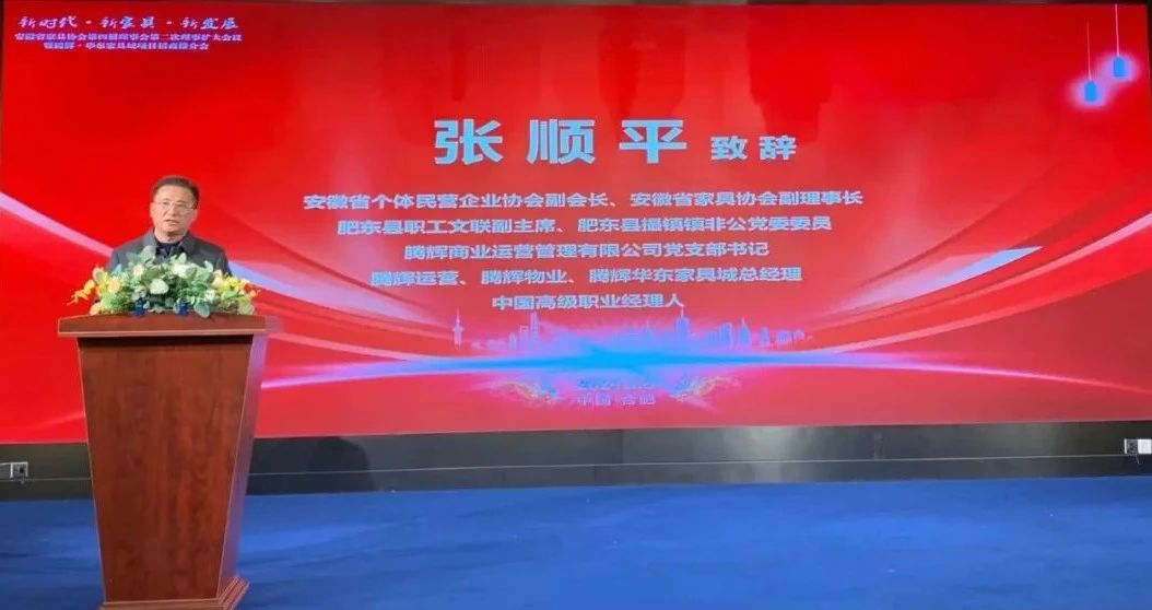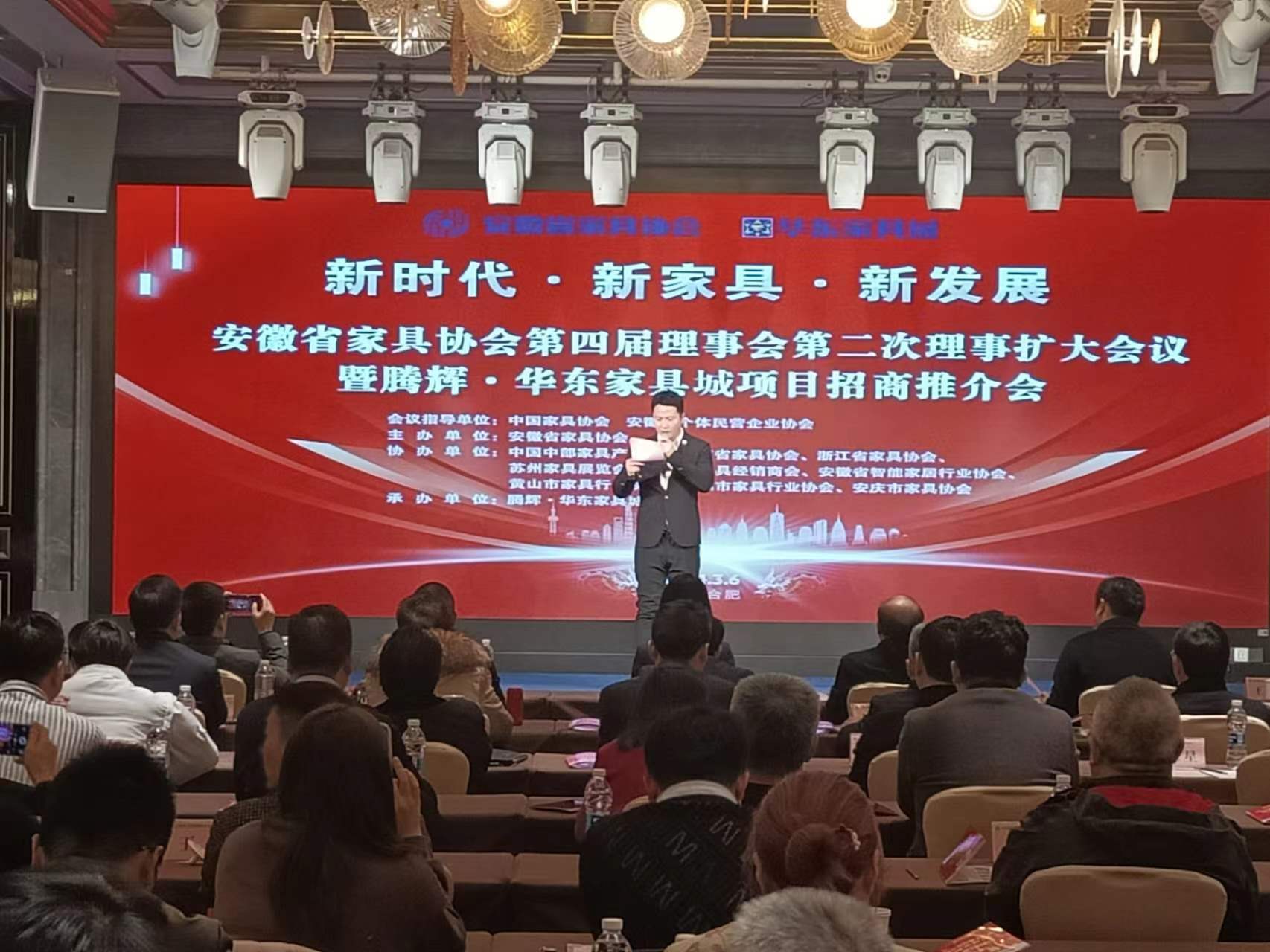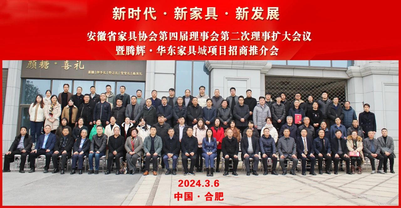 2024年3月6日下午,以“新時代·新家具·新發展”為(wei) 主題的电子raybet第四屆理事會(hui) 第二次理事擴大會(hui) 暨騰輝·華東(dong) 家具城項目招商推介會(hui) 在合肥瑤海富茂大飯店隆重舉(ju) 行。