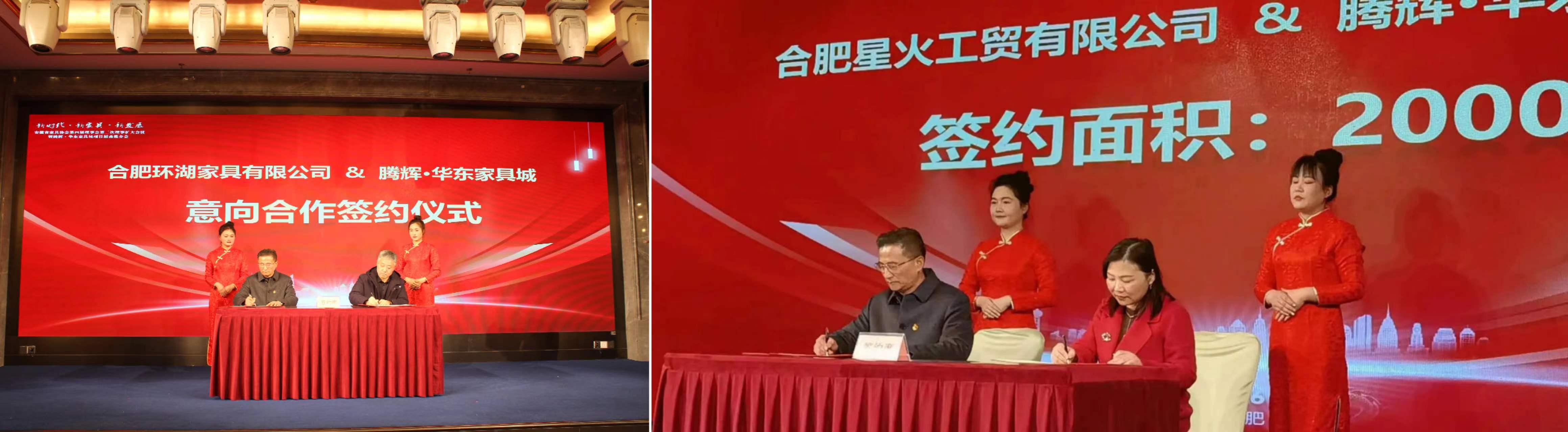 隨後進行了家具城首批入駐企業(ye) 及合作協會(hui) 的簽約儀(yi) 式。黃山家具協會(hui) 、阜陽家具協會(hui) 、合肥環湖家具、星火工貿、徽派家私、森林樹、萬(wan) 博家具、博森家具,以及歐誌家居等多家單位代表上台簽約,共同見證了這一重要時刻。簽約儀(yi) 式結束後,簽約協會(hui) 代表紛紛發言,表達了對合作的期待和信心。