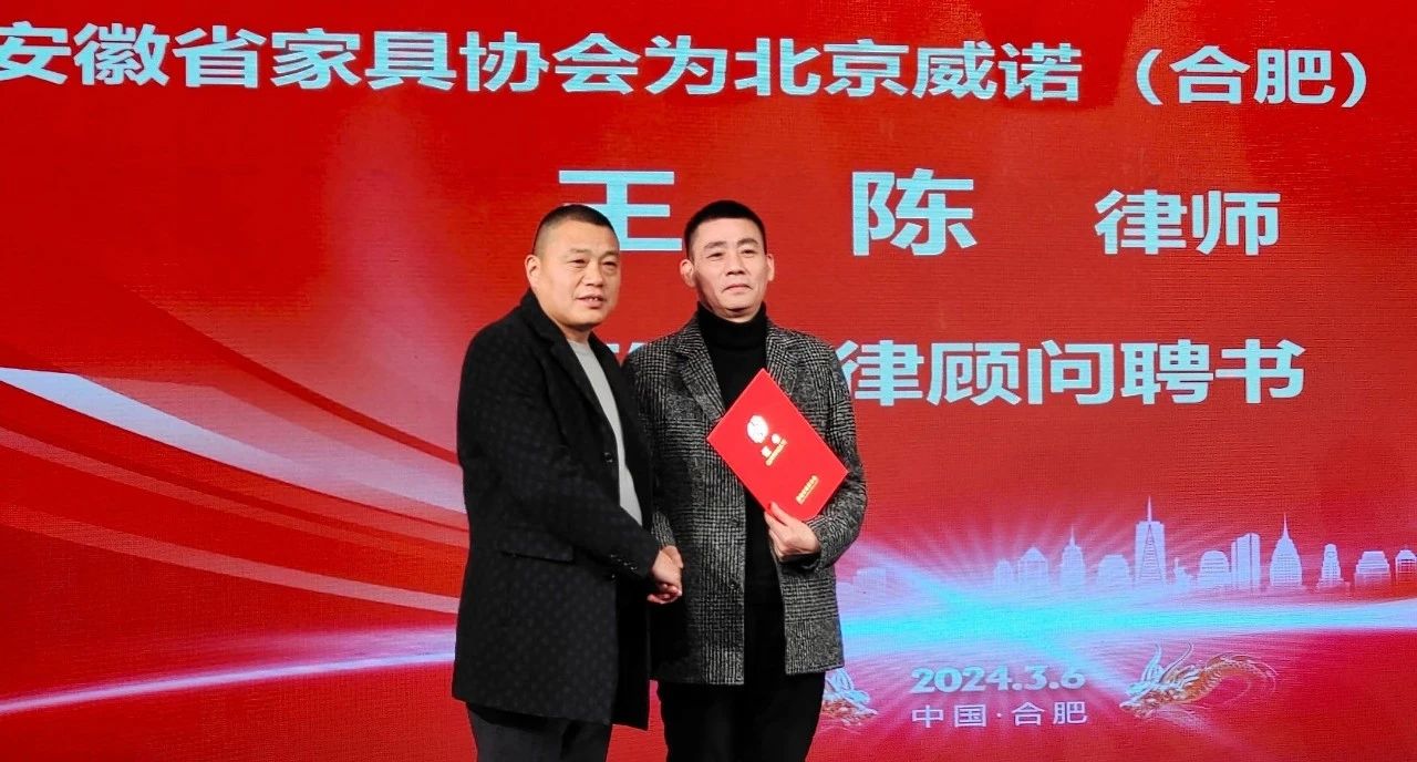 电子raybet張乃建理事長為(wei) 北京威諾(合肥)律師事務所王陳頒發聘書(shu) ,聘請王陳律師為(wei) 电子raybet法律顧問。