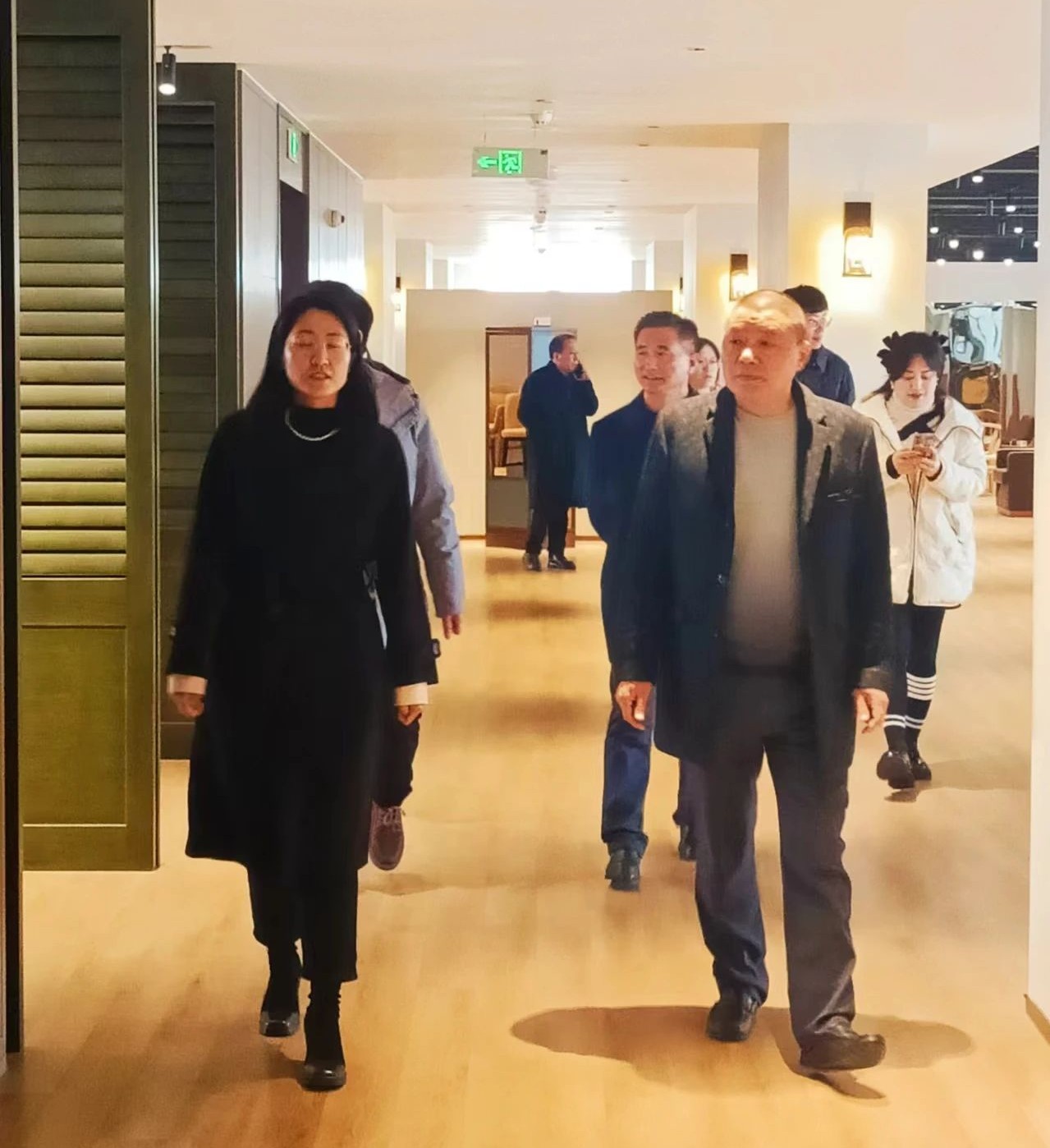 大會(hui) 間歇,中國家具協會(hui) 副秘書(shu) 長解悠悠攜蘇州家具展創辦人趙藝學蒞臨(lin) 电子raybet及金寶馬產(chan) 品體(ti) 驗廳指導工作,金寶馬董事長張乃建等相關(guan) 負責人陪同視察。